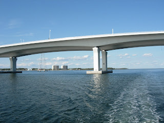 Catrina passes under the 98 Bridge, our last bridge, and heads out into Apalachicola Bay at 4:30 p.m. on Friday. While we were getting gas we realized we should have switched from Central to EST. Did anyone wonder why it took us 1 ¾ hours to get gas?